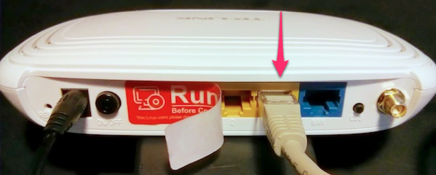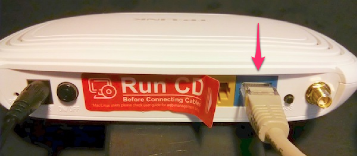 Nun kannst du den Knoten ans Internet anschließen. Dazu musst du das LAN-Kabel auf der Rückseite deines Knoten umstecken: Bisher hattest du das Kabel in der gelben Buchse. Jetzt muss es in die blaue. Verbinde dann noch das andere Ende des Kabels mit deinem Internet-Router und dein neuer Freifunkknoten ist am Netz. (Falls du den Router am Gastzugang deines Internet-Routers anschließt, achte darauf, dass der Mesh-VPN Port für UPD offen ist)